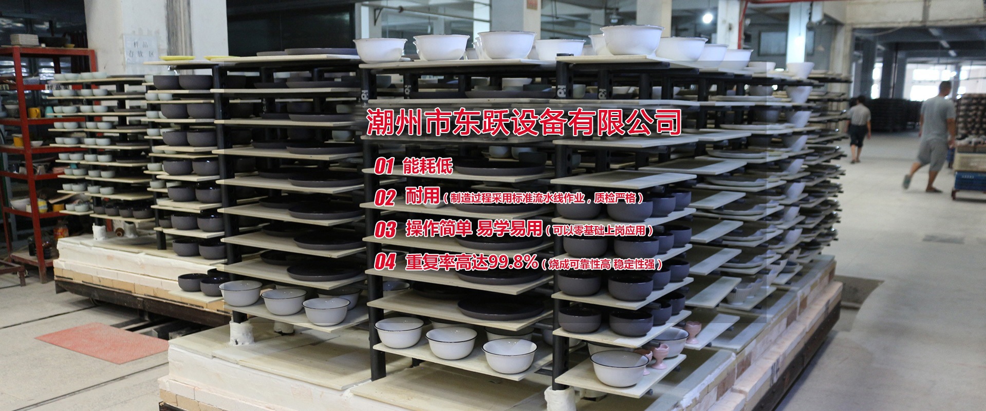潮州市東躍設(shè)備有限公司,創(chuàng)立于公元2011年5月14日,經(jīng)過(guò)進(jìn)十年的努力,已發(fā)展成一家擁有集研發(fā)、設(shè)計(jì)、加工制造、安裝、調(diào)試與售后一體化的窯爐公司。設(shè)計(jì)理念:1.能耗低2.耐用(制造過(guò)程采用標(biāo)準(zhǔn)流水線作業(yè),質(zhì)檢嚴(yán)格)3.操作簡(jiǎn)單 易學(xué)易用(可以零基礎(chǔ)上崗應(yīng)用)4.重復(fù)率高達(dá)99.8%(燒成可靠性高 穩(wěn)定性強(qiáng))   現(xiàn)有設(shè)計(jì)人員10名,加工制造和安裝人員約100人,調(diào)試人員10人,售后服務(wù)人員10人,公司總?cè)藬?shù)約200人。公司本著以人為本的發(fā)展策略,不斷網(wǎng)絡(luò)人才,發(fā)展自動(dòng)化窯爐技術(shù)。